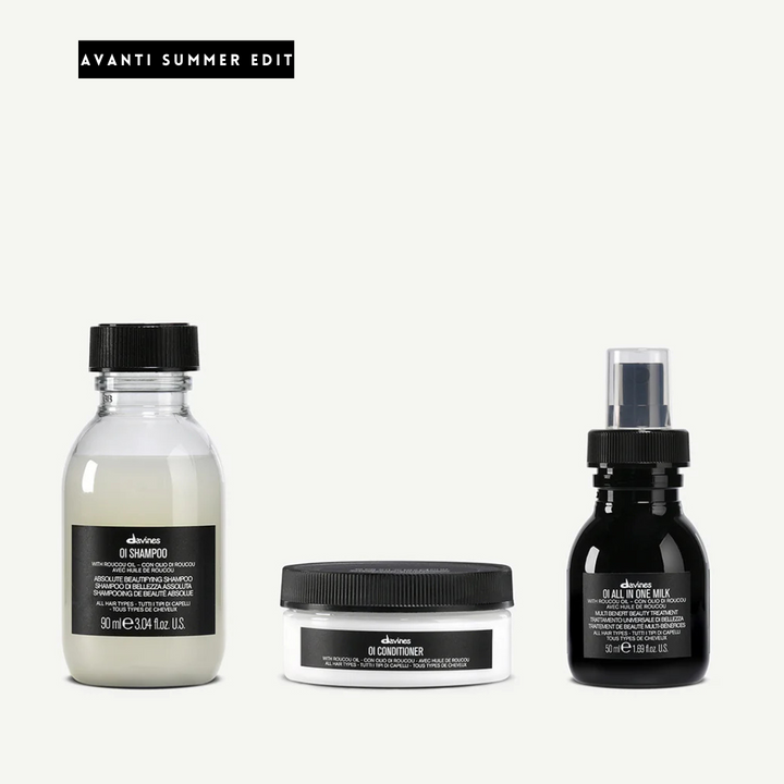 A nourishing travel set for all hair types.The ultimate product combination for all hair types, the OI Travel set is designed for beautiful, shiny and fragrant hair. These bestsellers are perfect for nourishing and softening your hair on the go. This set includes travel size products of OI Shampoo, OI Conditioner and OI All in One Milk.