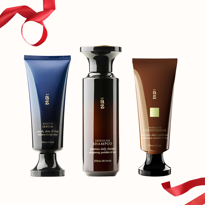 - Apply a generous amount of Indulge Shampoo to wet hair, massaging into the scalp and working through the lengths. Rinse thoroughly.